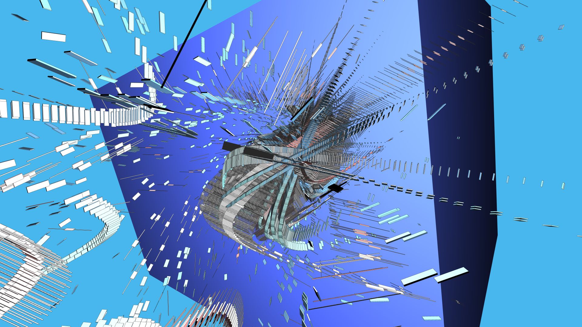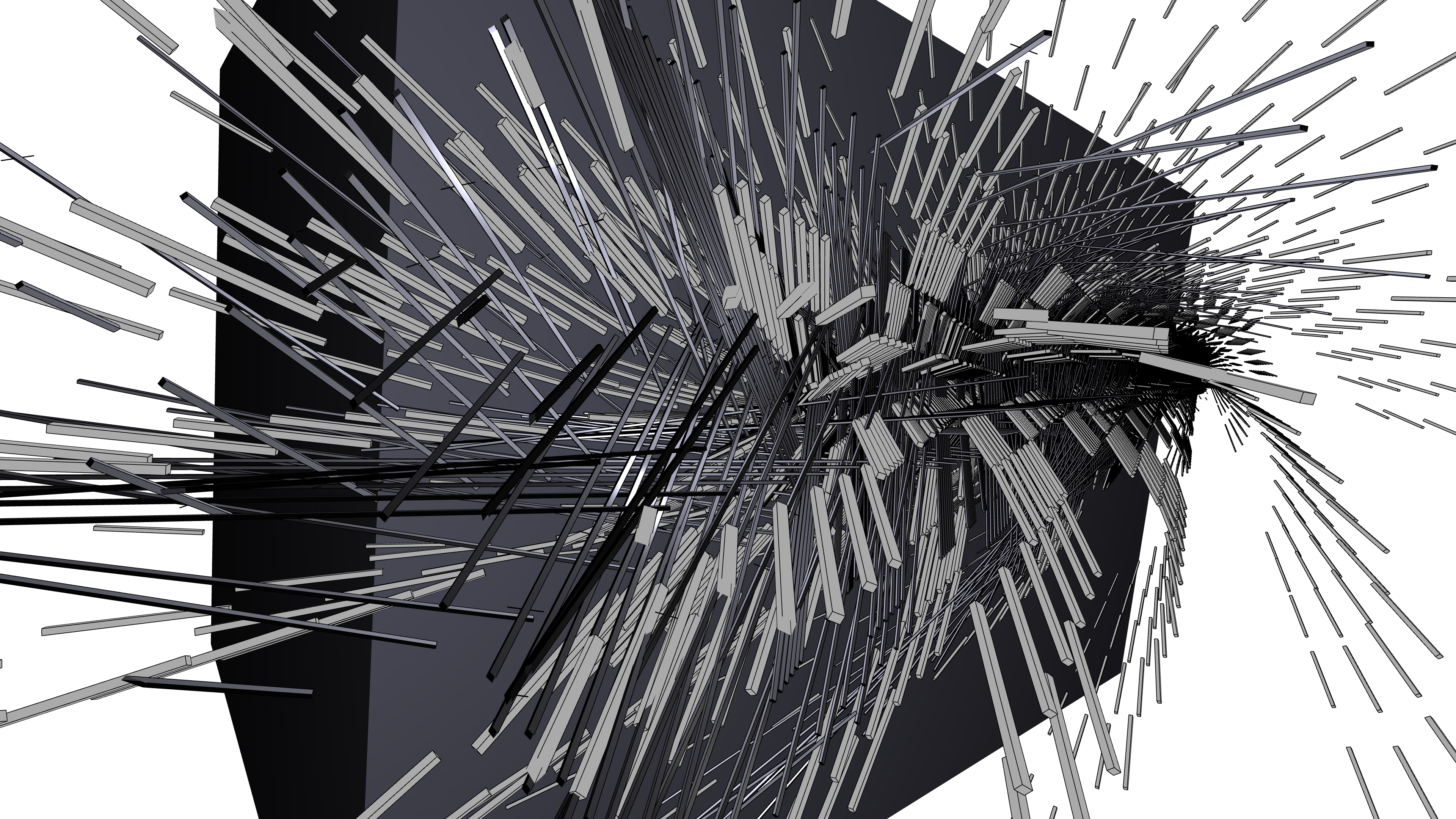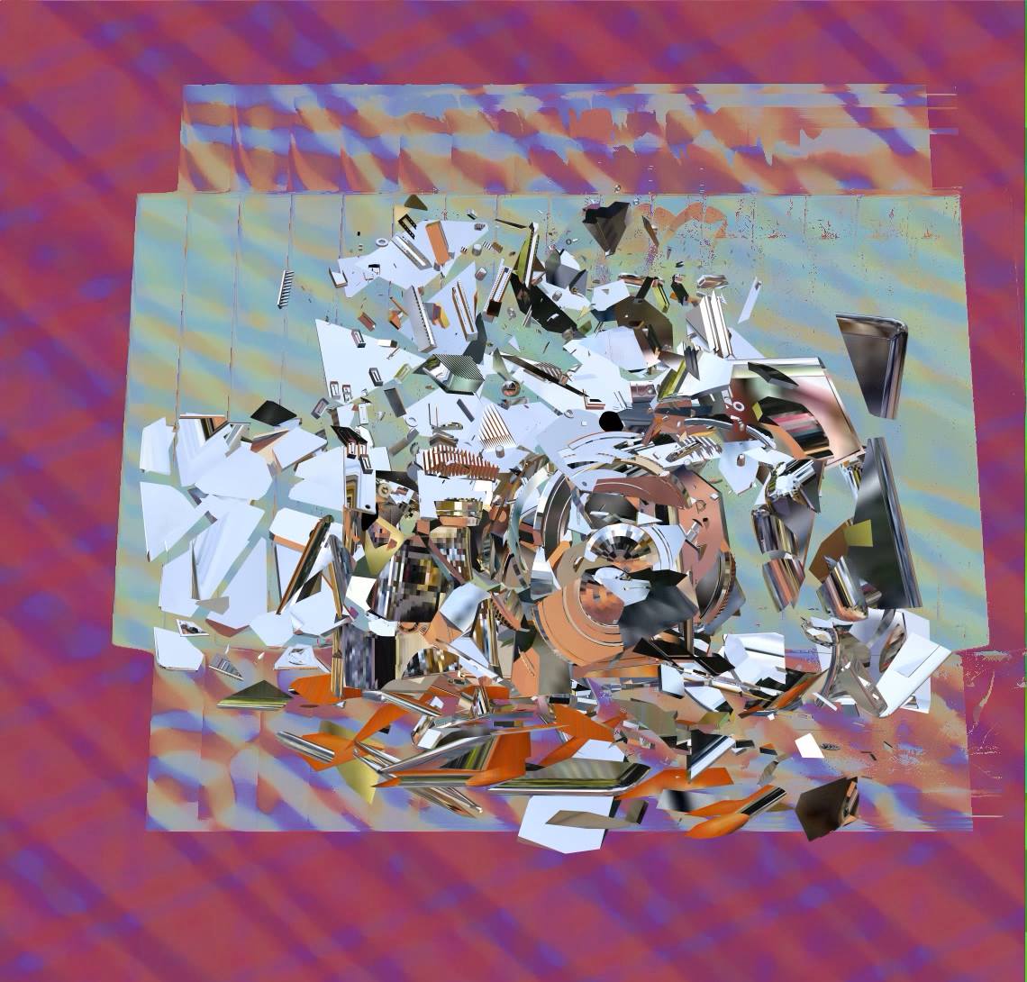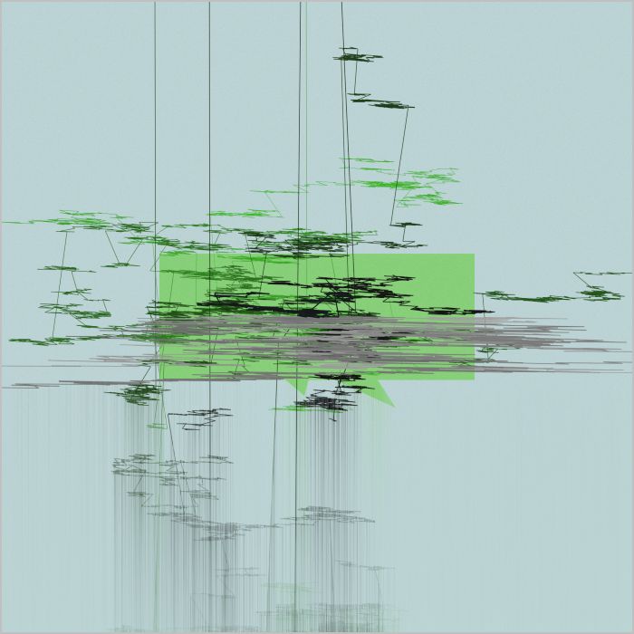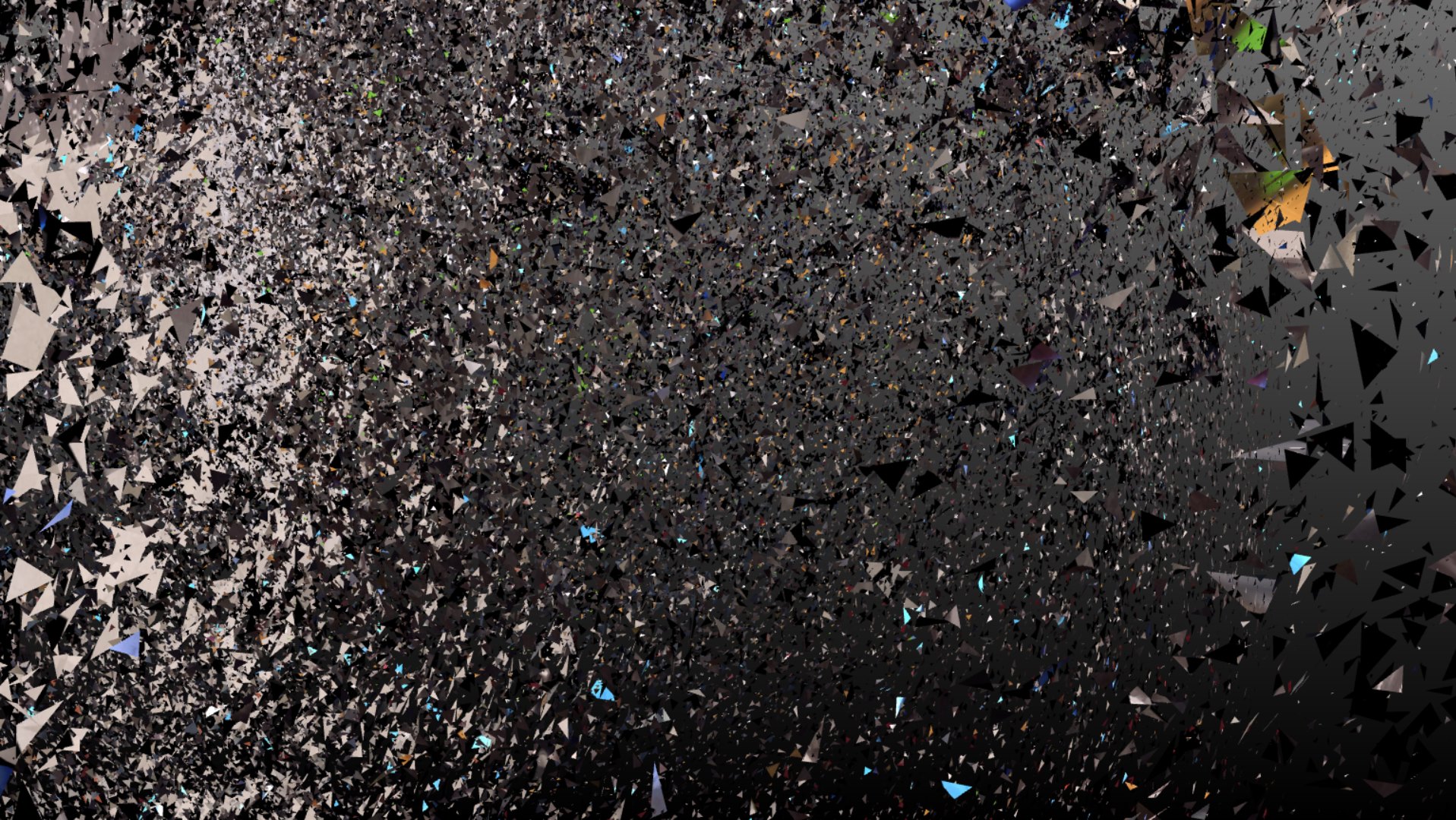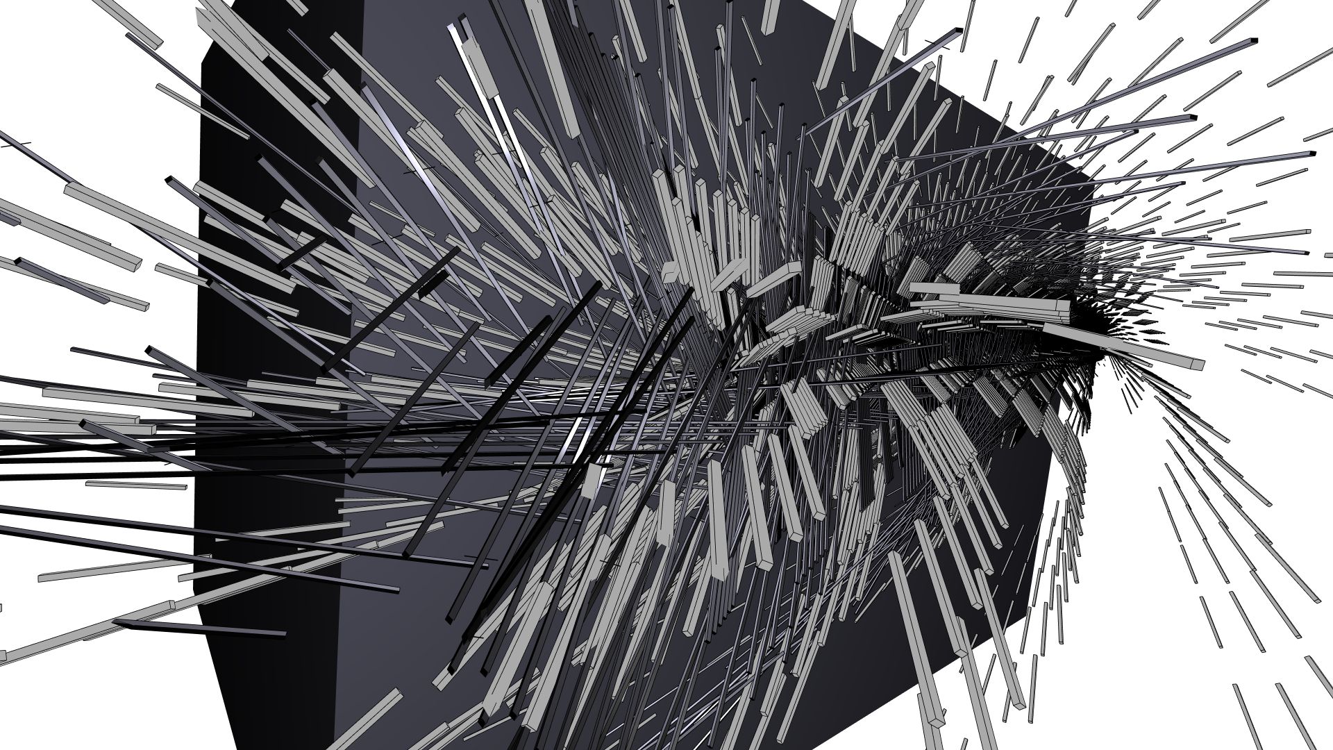 Simple shapes generate complex and chaotic snapshots of a larger form, still image with a sense of rapid motion going through repetitive sequencing of parametrized mathematical functions, rotations and placement of objects. The parameters for sequence attributes, shapes, lighting, materials and colors are driven by the hash of the minting transaction, producing unique and surprising results.