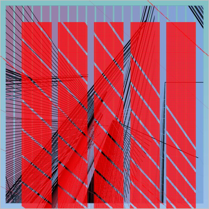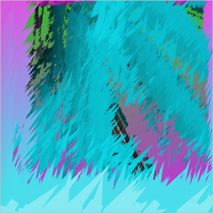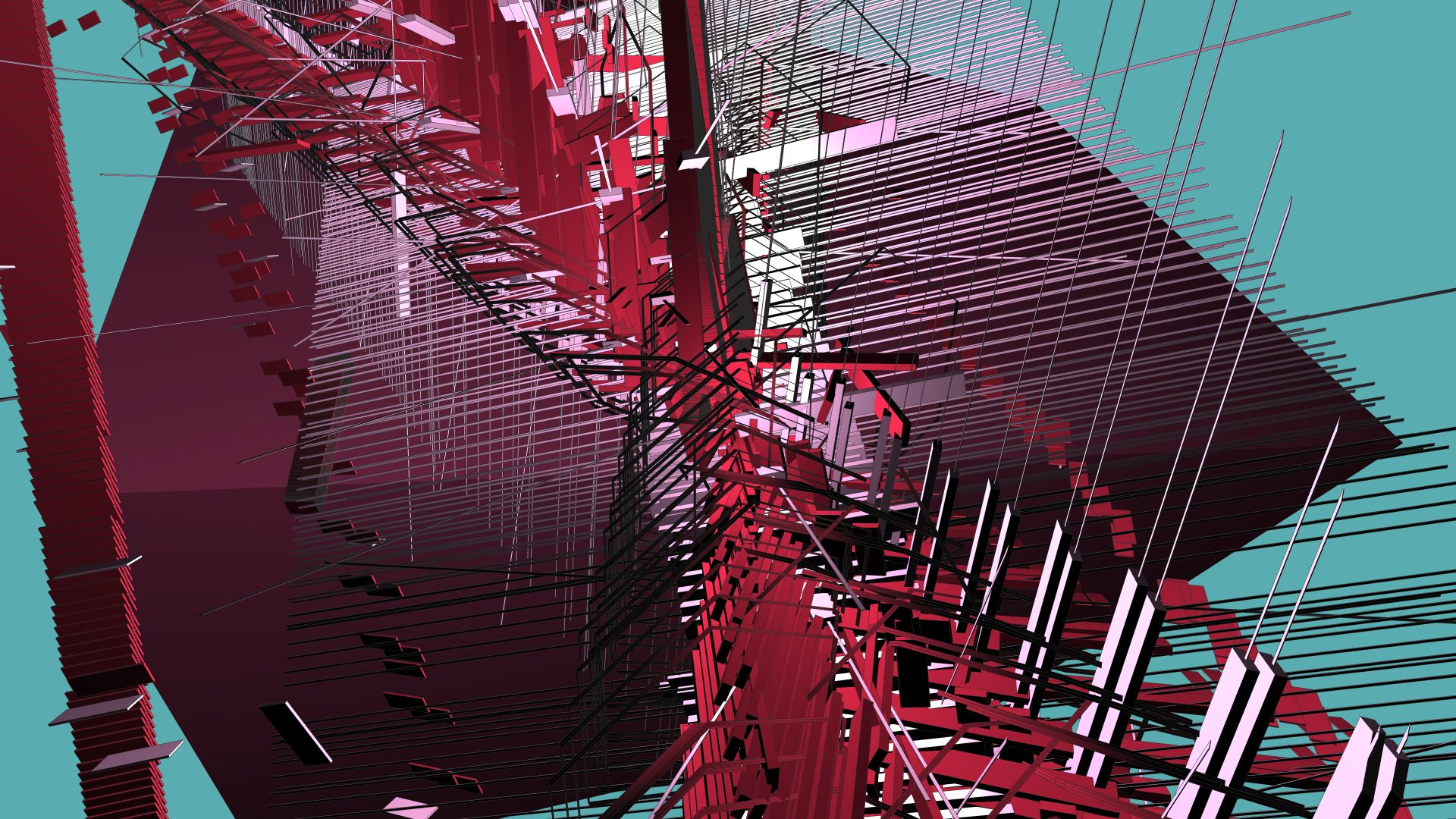 Augmented Sequence is a static piece, with it I wanted to capture the rapid and chaotic motion and the strong colors I use in my VJ/installation work and bring that aesthetic to a large print. There is a strong, almost synesthetic connection between the music I was working on at the time and Augmented Sequence